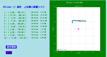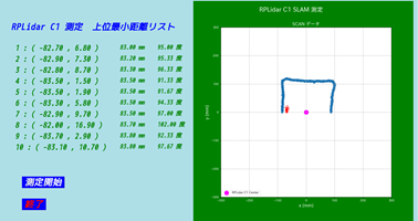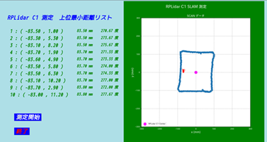 USB(シリアル)Lidar SLAM その2 Lidar RPLidar C1の基準方向から ±の角度範囲で測定データ表示してみました。基準方向は下記の図のX軸方向です。まずは、全周360° 前方±45°±90°±135°