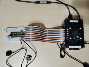 GPIO40ピンをフラットケーブルにて外側に出し、変換基板とブレッドボードにて
